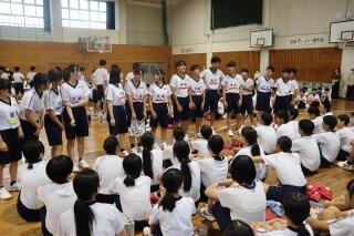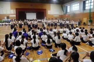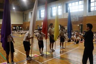 現在、文化発表会の合唱練習の真っ最中ですが、本日は第39回体育大会の結団式が実施されました。各団の色も決まり、それぞれ団長・副団長・リーダーからあいさつをしてもらい、各々に指揮の高まる掛け声を上げていました。10/12(日)の本番に向けて、各団ともにまとまりのある取組を期待しています。