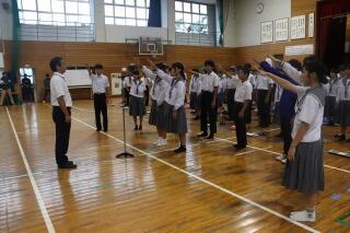 本日、県秋季大会の推戴式が行われました。地区の代表にふさわしく、各部ともに力強いあいさつ・メッセージが述べられました。校長先生、3年生の生徒会長からも激励の言葉をいただきました。目を輝かせて話しを聞く様子にりりしさがあり、今後の活躍が大いに期待されます。選手宣誓も立派に行われました。以下、その様子の写真です。