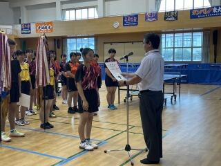 9/19(木)の6校時は、R6年度中体連地区秋季大会の選手推戴式が行われました。先輩方、各部の保護者の代表者の方々にも見守られながら、それぞれの競技から強い決意表明をしてもらいました。最後の夏に向けて目標を立てるきっかけとなる大会にしてほしいですね!頑張れ!西中、部活動生!!!