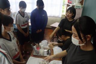 本日は、活動3(9:45~10:50:65分)、活動4(11:10~12:15:65分)で高等学校の先生方・先輩方のご指導で貴重な体験活動をさせていただきました。都城高校からは、「普通科 食物調理コース」「普通科ヘアデザインコース」「福祉科 介護福祉コース」「電気システム科」に協力をいただきました。ありがとうございました。