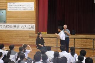 逆に、弓道は静かな集中力の世界で、4人が代表で技を見せてくれましたが、大変すばらしかったです。留学生も感動していました!9月には、西中にオーストラリアから留学生が来てくれます。また、たくさん交流できるといいですね。