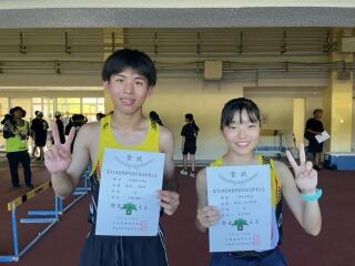 和田帆加さん 3年女子800m 予選敗退  安樂煌雅さん 3年男子100m 5位入賞