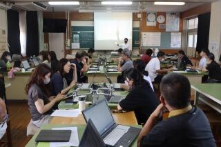 21世紀に求められる資質・能力(コンピテンシー)の育成に役立つアセスメントツール(NINO・NRT等)の活用方法について、先生方で学びの時間をもちました。オンラインで講師の先生からの指示のもと、熱心な学びの時間となりました。学んだ内容を、今後の西中生徒の成長に生かしていきます。生徒の皆さんも、夏休みを有効活用し、自分の弱点克服、普段できない学びにチャレンジしてみてください。