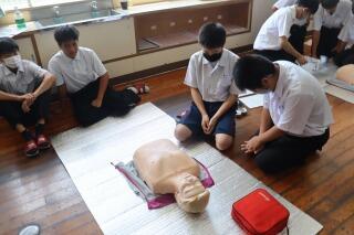 本日は、2学期のスタートに向けて、課題点検をおこないました。中には、2学期はじめの実力テストに向けて、新たな課題をもらった学年もあったようです。課題はやりっぱなしではなく、必ずやり直しをして本当の実力を身につけましょう!課題点検後は、各部活動の代表生徒と先生方を対象に、都城消防局のご指導で、救急法の研修を行いました。スペアのない命です。いざというときに、対応できる力を身につけておきましょう!