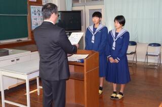 終業式の後に、表彰集会(リモート)を実施しました。今回は、前回の表彰集会でできなかった表彰+12月大会・コンクール分等について表彰しました。県の大会での上位入賞、都城市スポーツ賞、吹奏楽部のアンサンブルコンテストの表彰など、2学期後半も西中生の活躍が光っています。