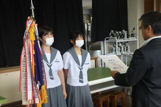 早いもので、1学期も終了です。本日は、体育館の気温も高く、熱中症予防のため、時間短縮の終業式となりました。暑い中でしたが、全校生徒は、しっかりとした態度で、4人の代表生徒の反省と、校長先生の「自分たちで考える・判断できる西中生」であってほしいとの思いのこもったお話を聞いてくれました。全員、安全に実りある夏休みを過ごしてほしいですね。なお、終了後は、リモートで表彰を行いました。本日は、団体の表彰を行いました。個人の表彰は、2学期の始業式で実施予定です。なお、表彰も全競技分の写真は掲載していません。ご了承ください。