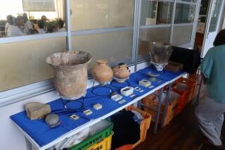 本日9/26(木)、5校時には、1年1組といっしょに都城市役所のサポートを受けて、ハロー元気講座で都城の歴史についての講座でした。土器の見学や、鎧、日本刀、雪舟の掛け軸などの説明、見学をしました。日本独特の文化に触れて、1の1の皆さんも、オーストラリア中等学校生の皆さんも、深い学びができました。以下は、その様子の写真です。