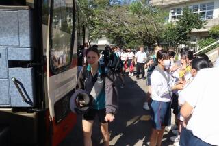 本日9/27(金)の1校時に、オーストラリア中等学校生の送別行事が行われました。児玉都城市教育長、都城市教委の宮崎課長をはじめ、市教委の皆様もお見送りに来ていただき、全校生徒・職員で送り出しをしました。お互いの代表生徒は相手の母国語であいさつをし、互いに感謝の念を述べていました。写真の「ずっと友達」の横断幕に象徴されるように、よい交流活動、異文化体験のできた3日間でした。いろいろとアドバイス、サポートをいただきました都城市教育委員会、ホストファミリーの皆様、先生方、西中の生徒の皆さん、本当にありがとうございました。