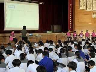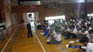 本日、6/19(木)の⑥校時、本校の体育館にて地域福祉についての講話がありました。都城市福祉協議会の方々が来校され、前半は福祉全般についてのお話をいただきました。後半は、横市地区の福祉に関する取組についての学びの場を設定していただきました。大変暑い中に、熱心なご講義をいただき、大変ありがとうございました。