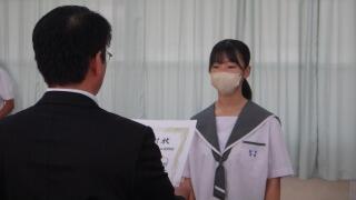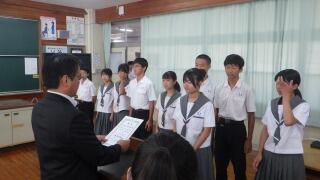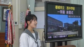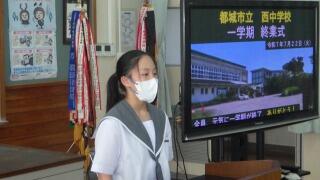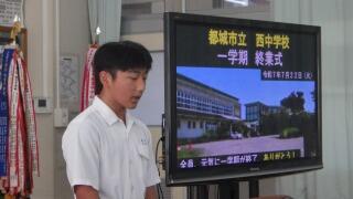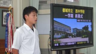 大きなケガや事故もなく、1学期を無事に終了することができました。本日の終業式は、熱中症対策のため、リモートにより実施しました。会場の被服室には、各学級の代表1名に参加してもらいました。市民憲章朗読後、始業式を開始し、各学年の代表+生徒会の学期反省などしっかりと発表してくれました。校長先生からも、西中のバージョンアップに向けてのお話をいただき、今後の西中生の成長に期待がアップしました。充実した夏休みにして、また、成長した姿で2学期を迎えましょう!