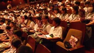 今年は戦後80年の節目の年です。この戦争による悲劇を決して忘れないために、都城市/都城市教育委員会が主催して、市内の中学1年生を対象に、MJホールにて「桜舞」を鑑賞しました。