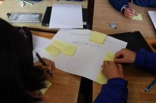 本日、12/10(水)4校時、1の3において、主題名「じぶんをすきになるおまじない(内容項目A(3)向上心、個性の伸長)」をテーマに、道徳の研究授業が行われました。絵本を題材に、自己を見つめ、自己の向上を図るとともに、個性を伸ばして充実した生き方を追求するための学びでした。生徒たちは、自分なりの思いを表現し、他者と共有しながら学びを深めていました。