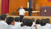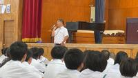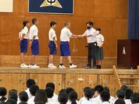 体育館で終業式が行われ、各学年代表による1学期の反省、校長先生のお話がありました。