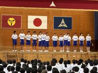 本日終業式終了後に、体育大会に向けての結団式を行いました。