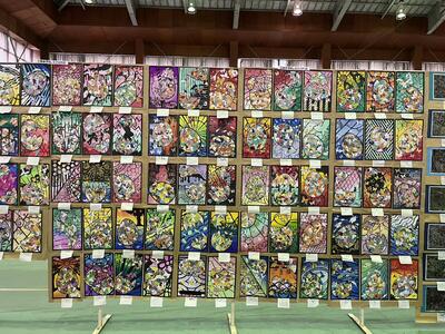 三股町武道館にて、三股中学校生徒作品、国語科習字、美術科作品、美術部作品合わせて500展以上出展されています。