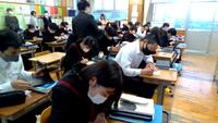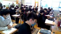 学級担任の先生方が授業をされ、英語の授業では中学校生活の思い出を発表したり、音楽の授業では卒業式に向けた合唱の練習をしたりしていました。