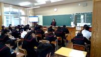 3年生の中で私立高校や国立高専に合格した人たちや県立高校に合格内定をした人たちが、1年生は各教室に回っていく形で、2年生は体育館で代表者が話をする形で行いました。