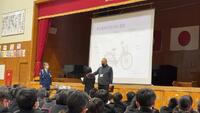 都城警察署の皆様にお越しいただき、死亡事故や大怪我をする事故が県内でも多発しているということ、中学生が自転車を運転する上で求められることをお話しいただきました。