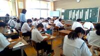 3年生のみ体育館で、1,2年生は教室でリモートでしたが、教室でもしっかりとメモをとっていました。