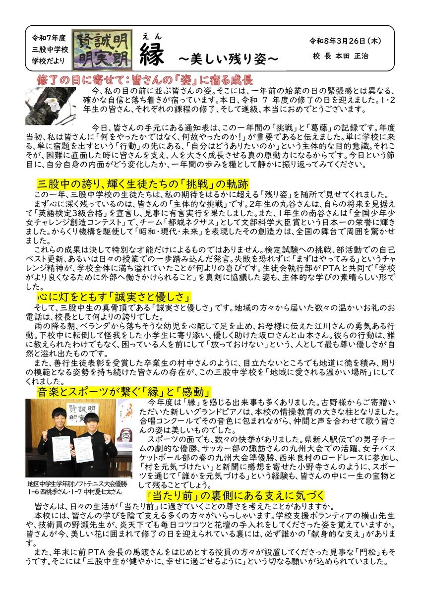 本Webページの著作権は、三股中学校が有します。無断で、文章・画像などの複製・転載を禁じます。