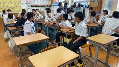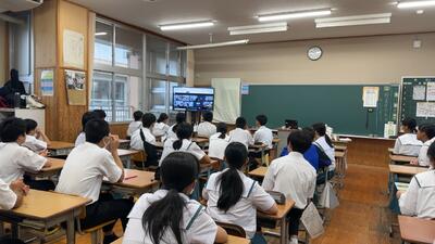 一覧へ 1. 五本松プロジェクト 投稿日時: 2024/07/11 三股中学校 本日、3年生は5時間目に、1,2年生は6時間目に、五本松プロジェクトが行われました。 はじめに、去年の2月にもしていただいた五本松プロジェクトから今日までに行ったものを説明していただきました。 その後、三股町を盛り上げるためには?ということで、どんな施設などがあったら良いか、各教室で、各グループで話し合いました。 これからの三股町を、今よりもっと盛り上げるために、中学校でも何か良いアイデアを出せれば良いと思います。