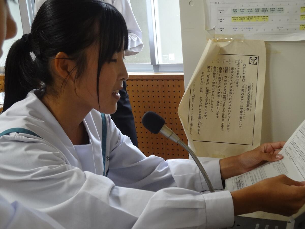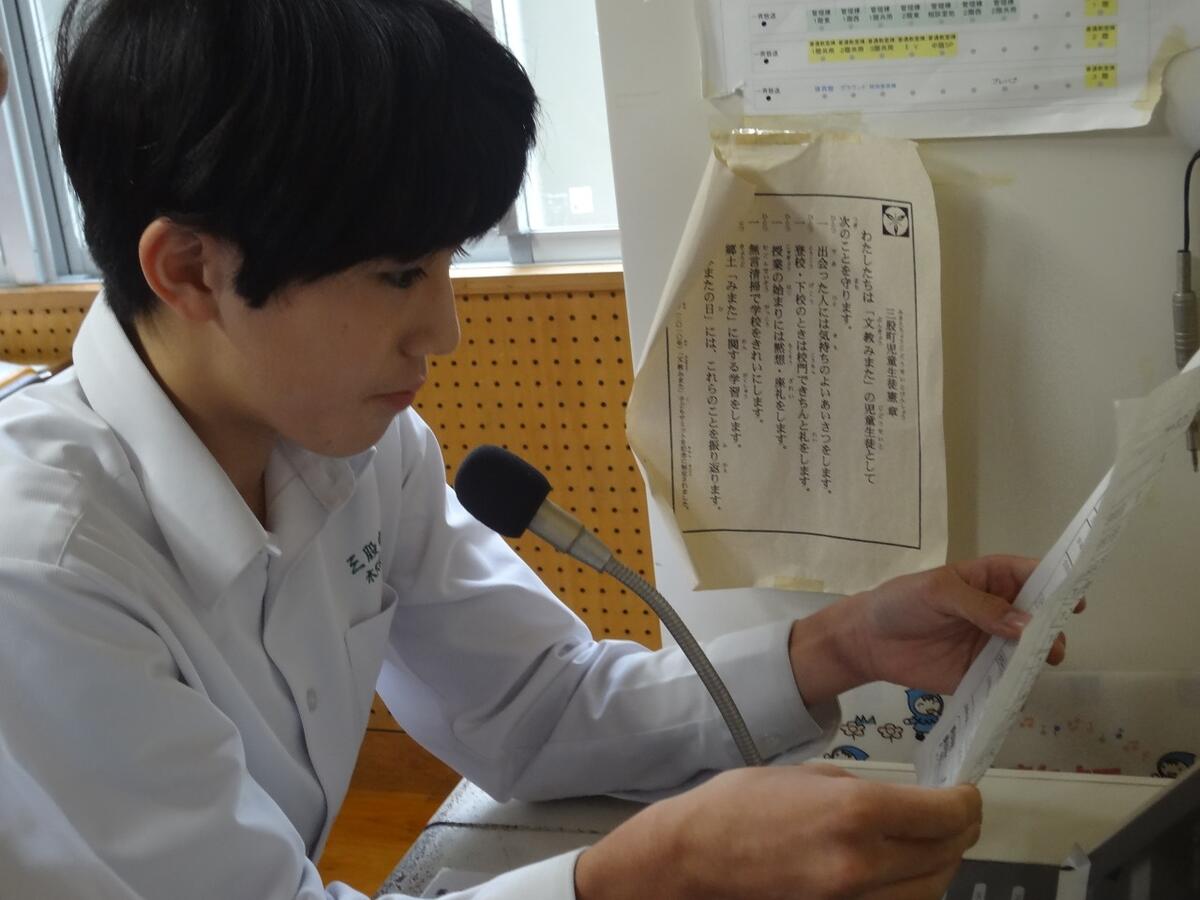 日差しの通らない寒い一日でした。今日の給食時間の放送は、前生徒会副会長(水久保さん)、3年7組学級委員長(飛岡さん