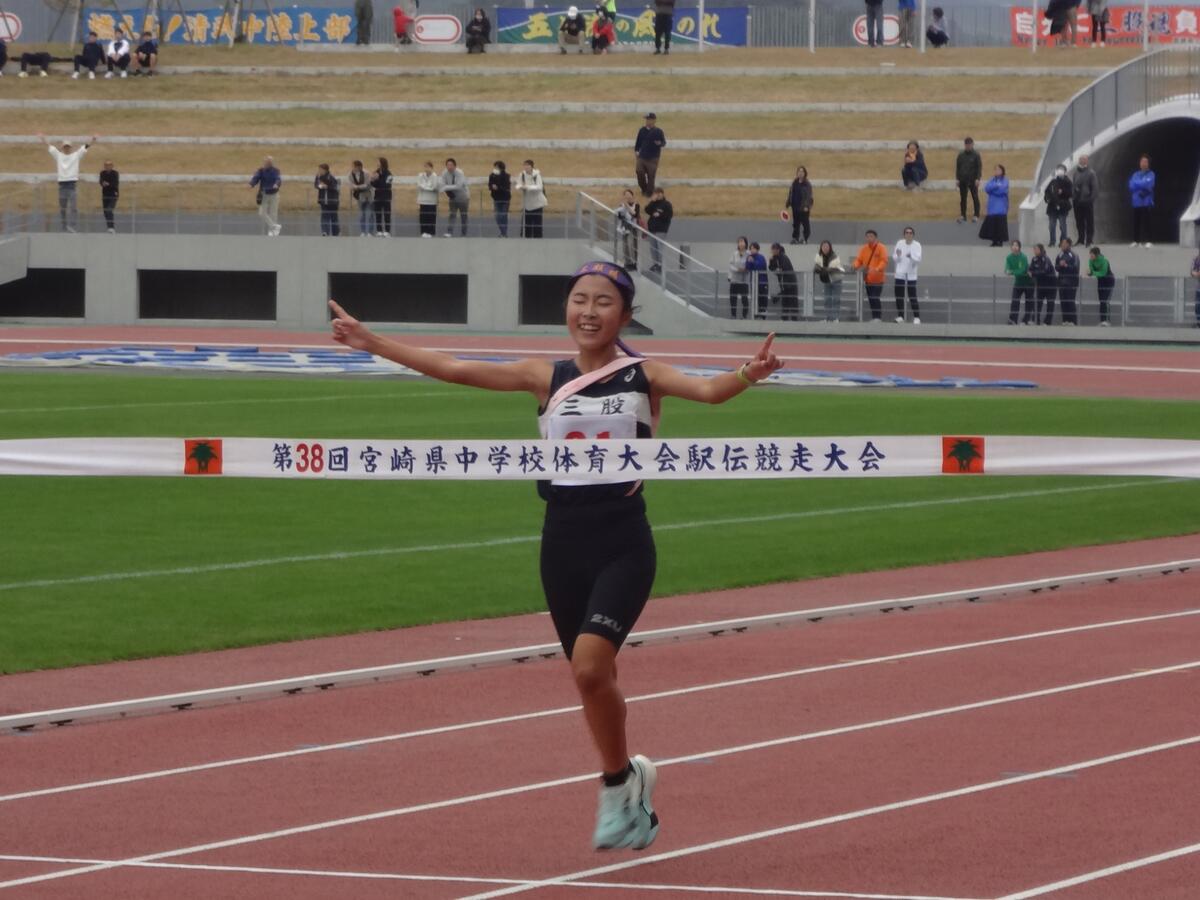 そんな中、宮崎県中学校駅伝競走大会が実施されました。駅伝部の皆さんは健康管理に気を配られ、保護者の皆さんも胃が痛くなる思いをしながらこの日に臨まれたのではないでしょうか。結果、女子優勝、男子3位の結果でした。女子はライバル校を寄せ付けない激走でタスキを繋ぎ、男子はライバル校に食らいつく走りでタスキを繋ぎました。最後のロードレースでも懸命に走る姿は、鉢巻きにある「三股魂」を美しく表現していたと感じました。