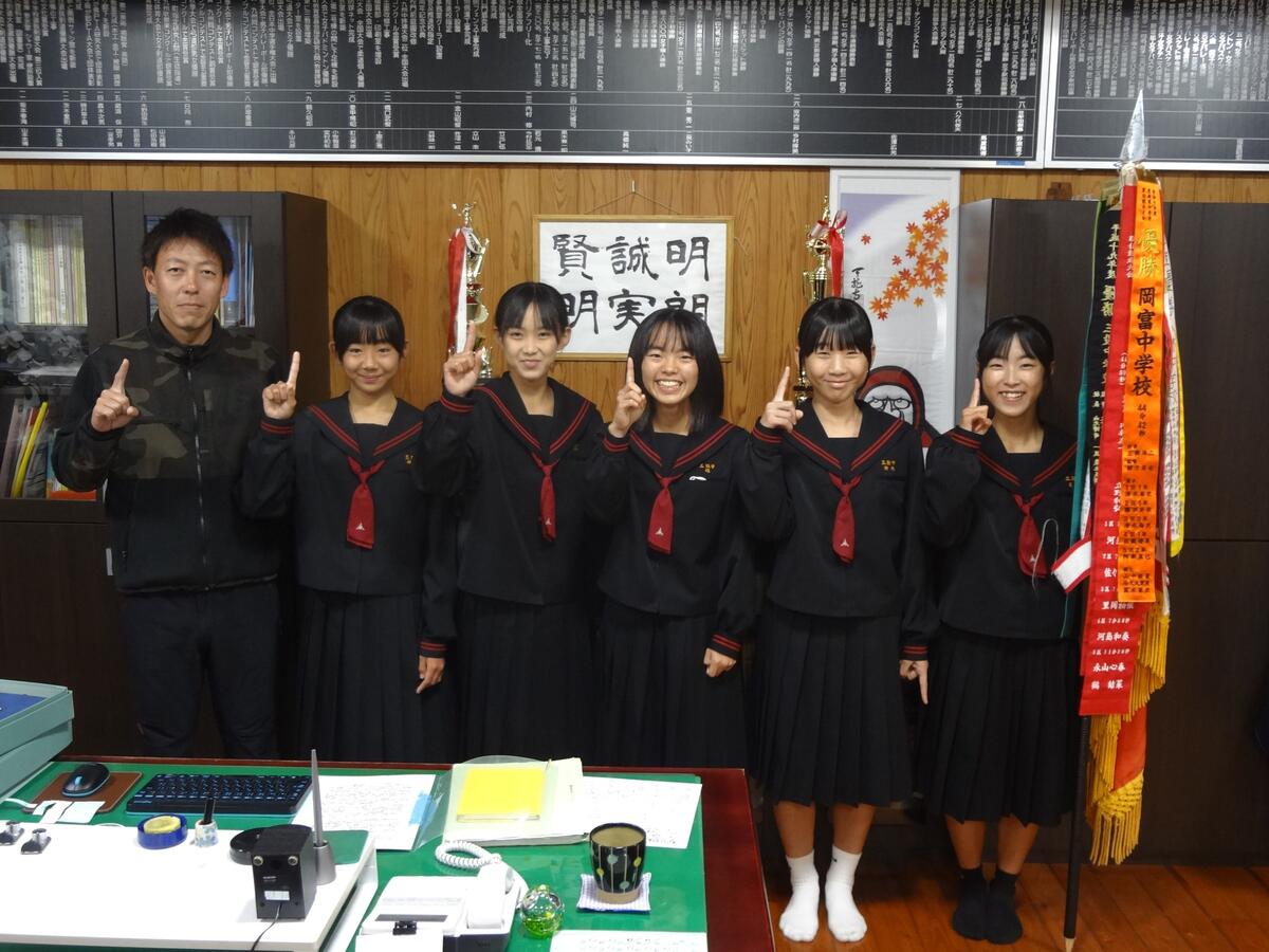 その横山邦泰先生と福本優先生が指導くださいっている駅伝部女子のメンバーと部員が優勝報告とお礼に来てくださいました。宮日新聞にも大きく掲載されており、うれしい限りです。