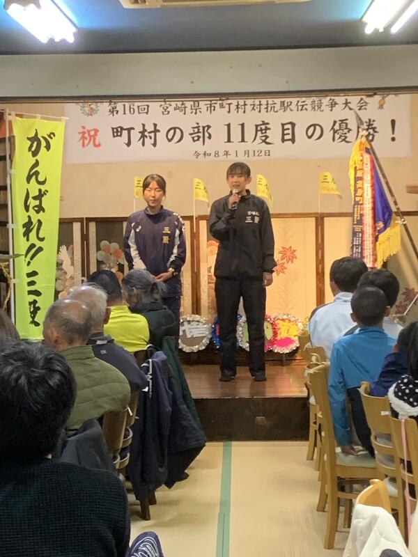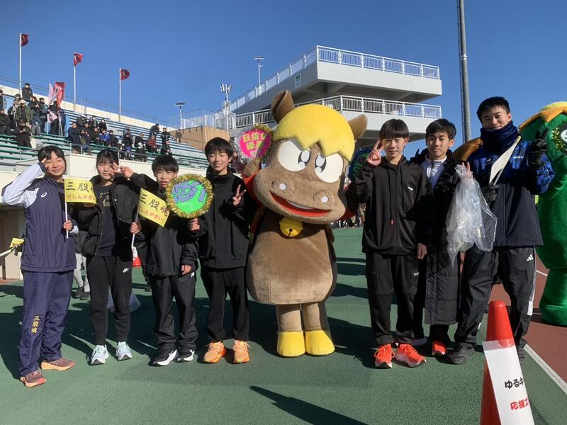 三股中学校からは、葉山 虹美愛さん(5区)上丸魁斗さん(6区)瀨尾 悠介さん(11区)が出走力走し4連覇に貢献しました♪