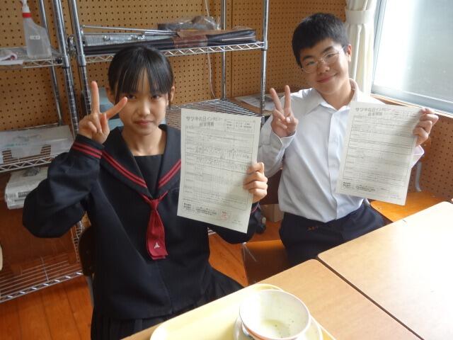 給食の放送で生徒会執行部の田尻さんと、1年9組学級委員長の小野寺さんによるサツキの日インタビューが放送されました。田尻さんのサツキ言葉・行動を見かけましたか?の質問に、小野寺さんからは『給食を早く食べ終わった生徒が、率先して食器を集め片づけをしている姿を多く見かけます。クラスのために行動できる心の広い生徒の多い学級になってきたと思います。』とありました。
