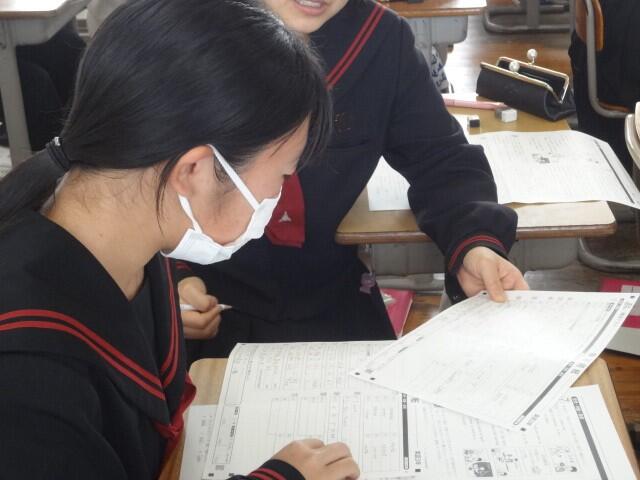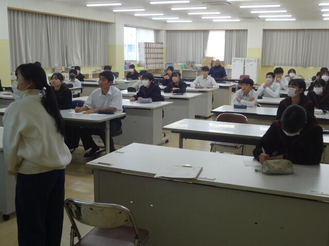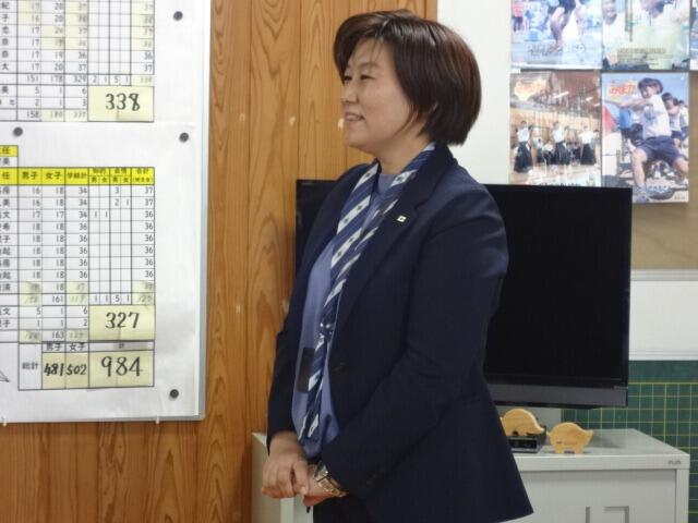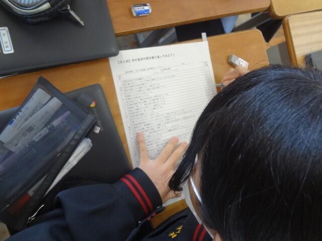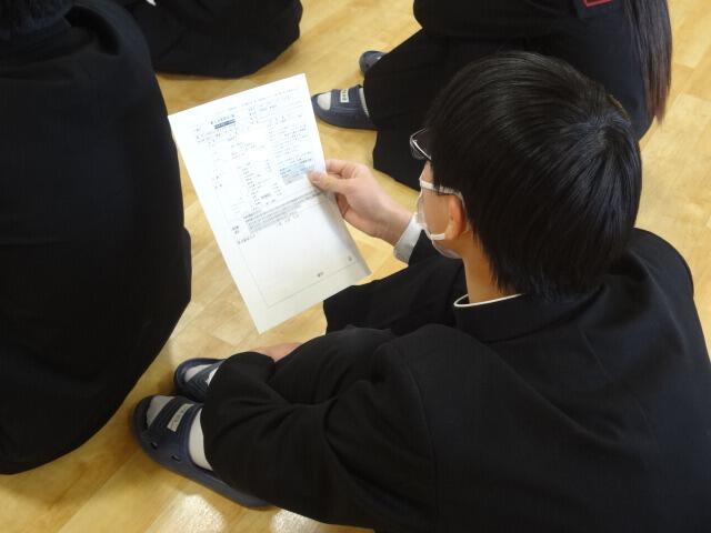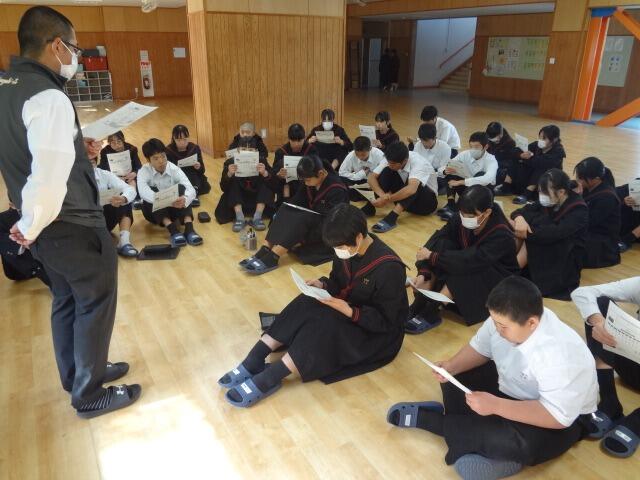 昼休みは、1月30日に実施する新入生・保護者説明会の準備計画についての集会がありました。部活動キャプテンには、30秒という短い時間で、いかに部活動の楽しさをアピールするのか、生徒会へは、受付や整列、人数確認がスムーズに進められるよう道具等の準備をお願いします。と説明がありました。小学6年生の児童と保護者の皆さんが、入学を待ち遠しく思える説明会となるように準備を進めてください。
