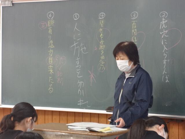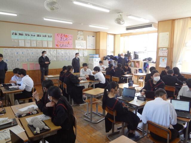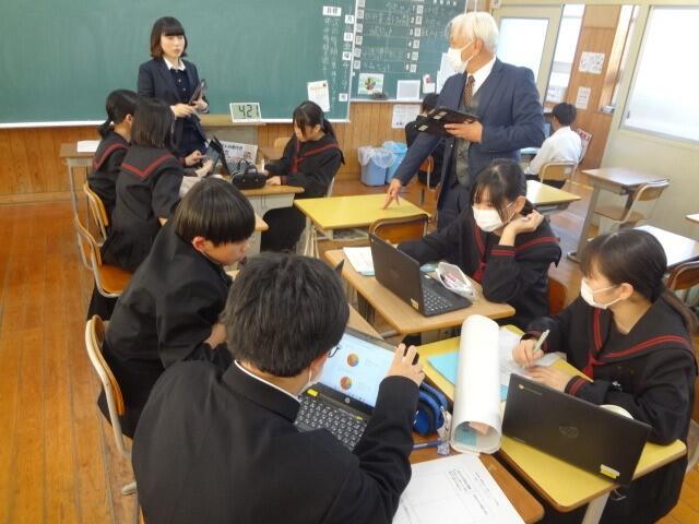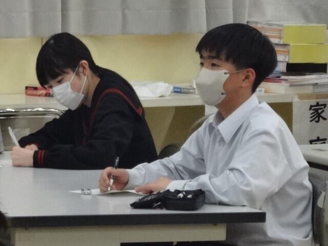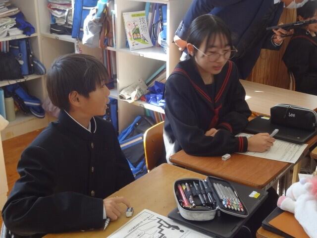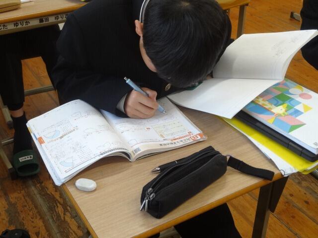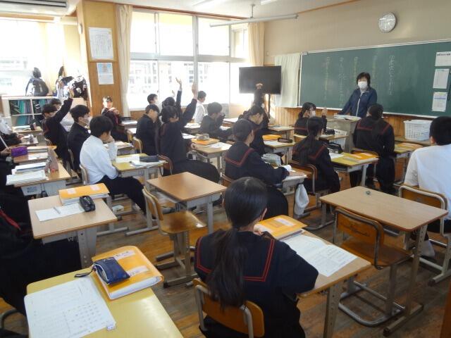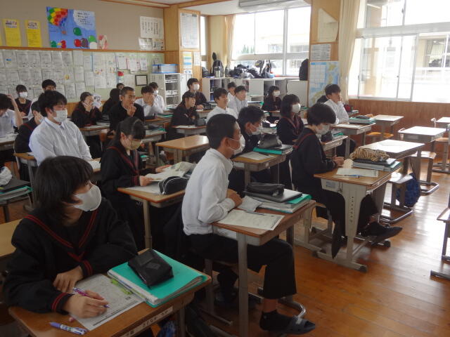 1年生の授業は、家庭科、英語、社会、理科の授業を参観させてもらいましたが、みんな一生懸命でした。中学生は教わる教科が多いです。Ⅰ時間の授業にどれだけ集中できたのかが大切です。