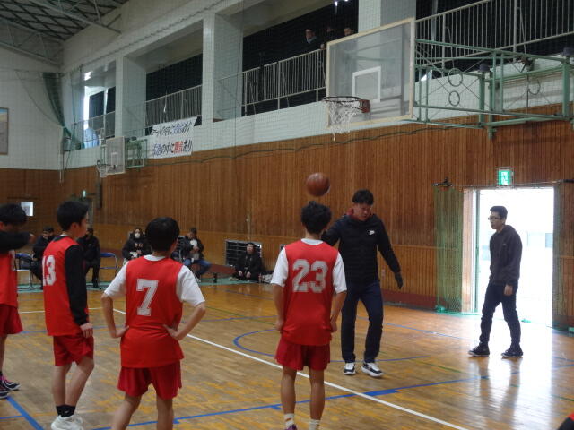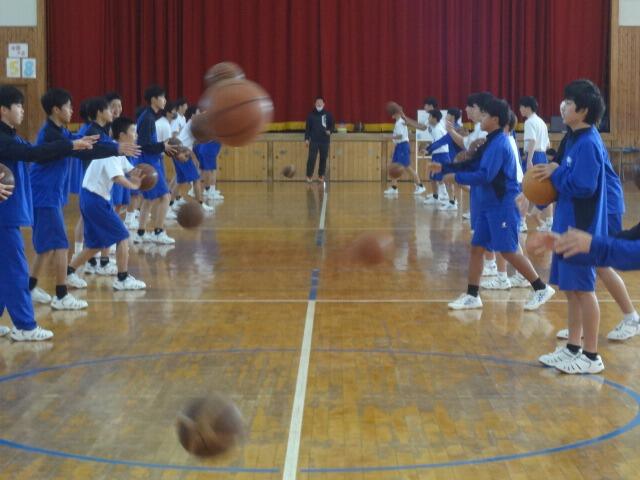 校内でも、男子バスケットボール部が練習試合、軟式野球部は町内のスポーツ少年団の皆さんと合同練習がありました。よい刺激をいただいたようです。