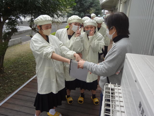 今日は1時間目から3年8組は調理実習でした。五平餅の形を整えたり、豆乳プリンを流し込んだりと楽しそうでした。田口さんと木下さんが五平餅を届けてくれましたが、食べやすい形に醤油のこんがりとした色味や香りに食欲を刺激され、ペロリといただきました。外はカリカリ、中はモッチリ、味付けは醤油の量がご飯の量に丁度良くとても美味しかったです。さらに、今、外薗さん・田口さん・上木場さんが豆乳プリンも届けてくれました。ごちそうさまでした。