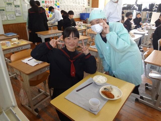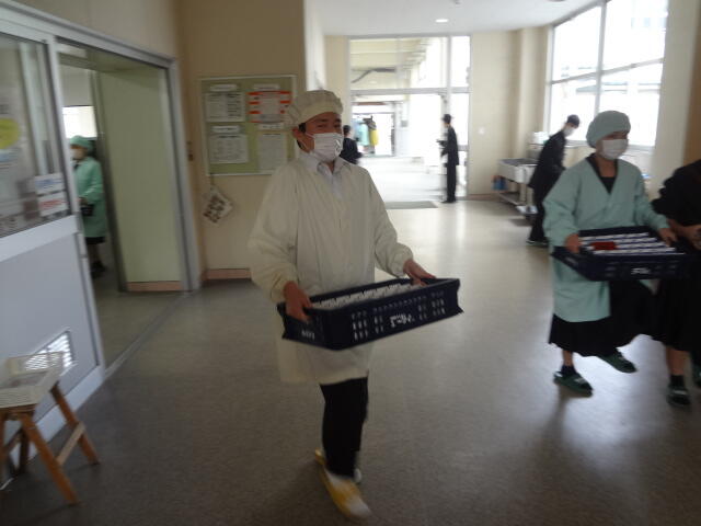 また、全校給食委員長の濵田さんからは、コンテナ室前に掲示されている「おせち」は家族の健康や幸運などの特別な意味や願いが込められた日本の伝統料理です。と紹介があり、副委員長の堂領さんからは「おせちクイズ」が出題されました。『伊達巻にはどのような願いが込められているでしょうか?』答えは『知識が増えますように』だそうです。