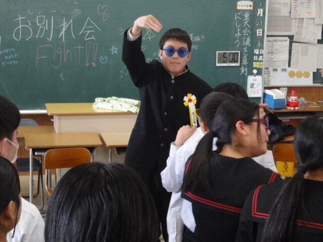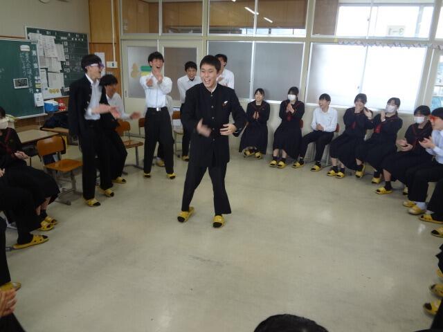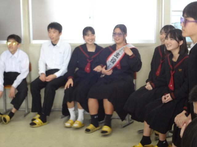 一つ目は、バドミントンの大会で山之内優介さん(1年)が3位に入賞しました!と野島先生より報告を受けました。