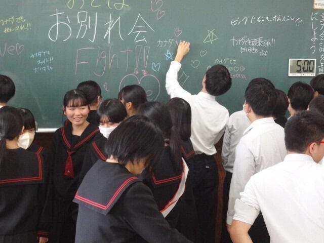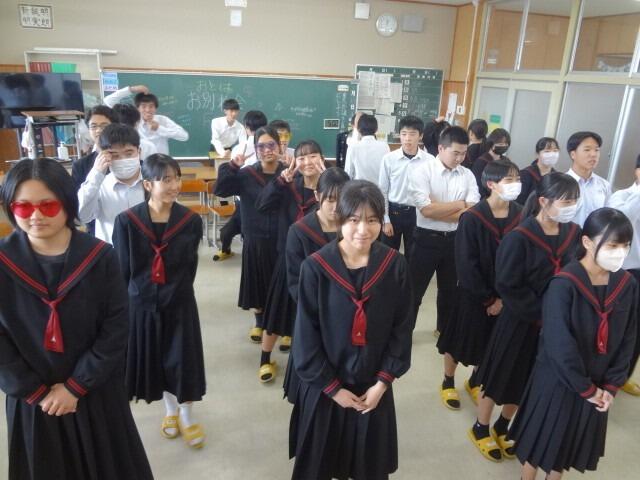 今日は、3年1組の生徒さんが本校最後の日でした。お世話になった先生へ「行ってきます」と「ありがとうございました」を伝えに、職員室を訪れていました。学年の枠を超えて最後のシャッターでした。必ずどこかで再開できると思いながらも寂しい気持ちになります。「張り切っていってらっしゃい」。