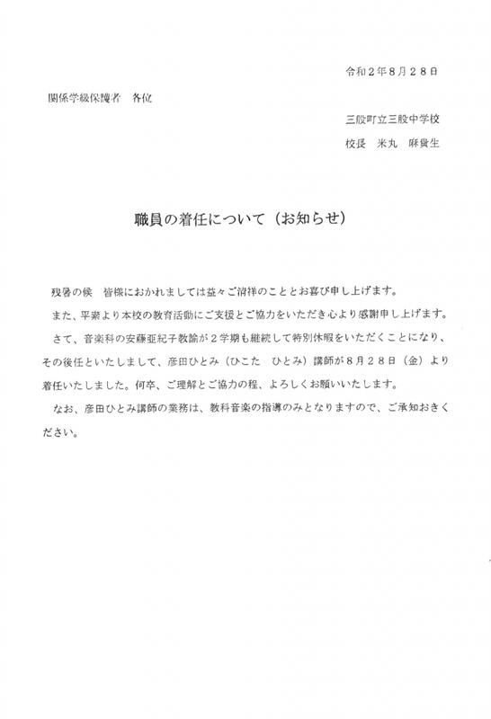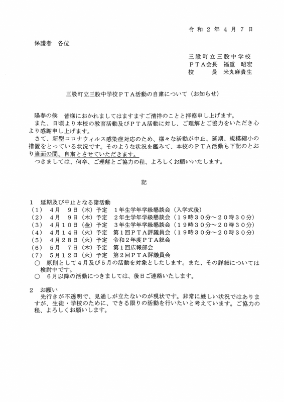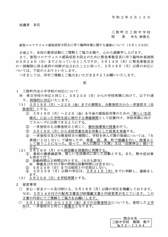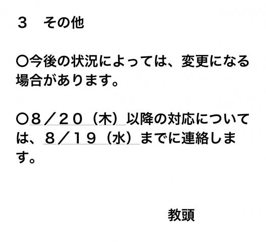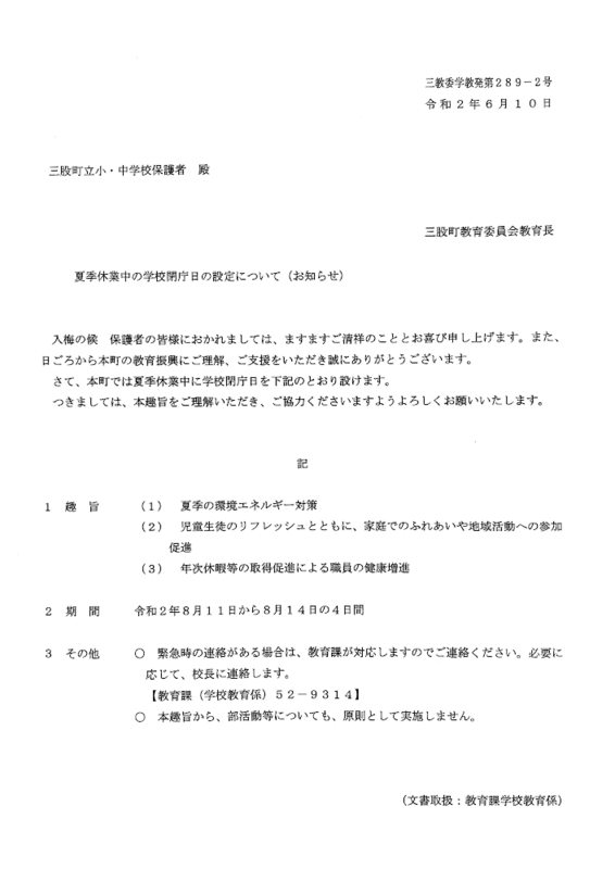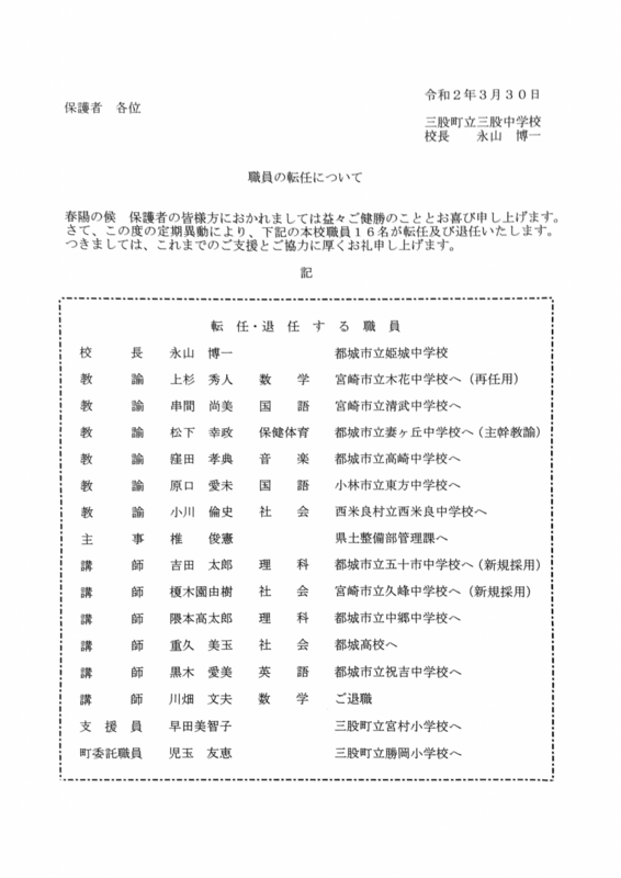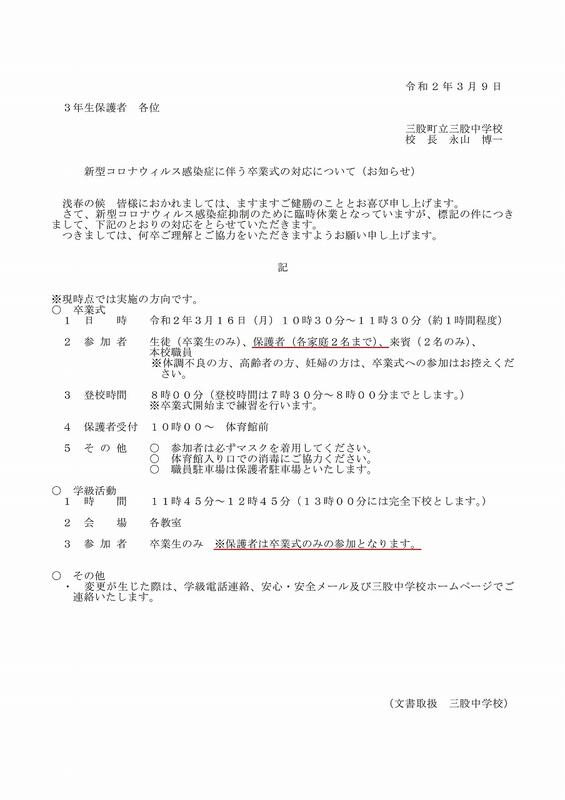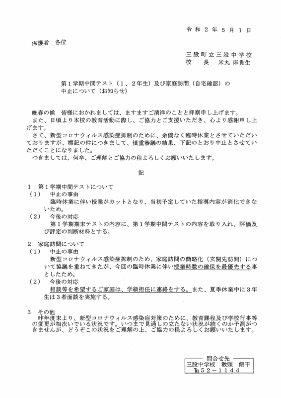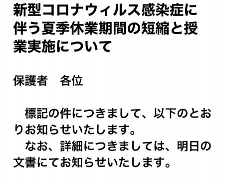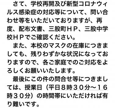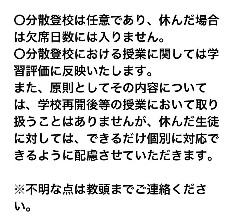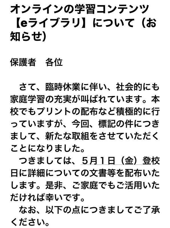 標記の件について、以下のとおりとなります。よろしくお願いいたします。なお、臨時休業及び春季休業の過ごし方のつきまして、再度、ご確認をお願いいたします。連日、地域の方々から連絡が入ります。重ねてお願い申し上げます。