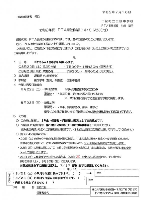 | 2017年の本校のHPより引用 『昭和44年6月30日、下校途中だった三股中学校の生徒4人が勝岡地区(新坂)で土砂災害に巻き込まれ、尊い命が奪われました。災害後、慰霊と安全祈願のため、新坂に地蔵尊が建立されました。今でも花が手向けられ、当時の思いは引き継がれています。6月2日、三股中においても全校生徒による追悼集会が行われました。これは、悲劇を繰り返さないために、毎年生徒会が開いているものです。また、生徒会では、毎年新坂の慰霊碑とその周辺の清掃を行っています。』 |