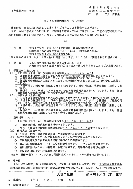 9月10日の体育大会で実施されない「部活動紹介」が、本日の予行練習で披露されました。