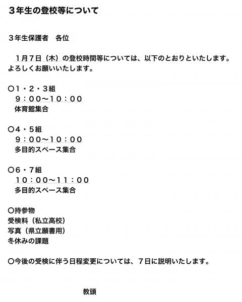 生徒代表3名による「2学期の反省」と「校長先生のはなし」「諸連絡」が