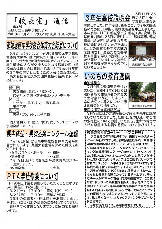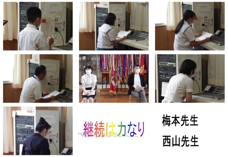 各学年の代表の生徒が、「1学期を振り返って」を放送で発表しました。