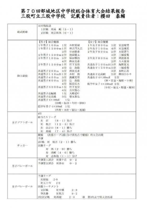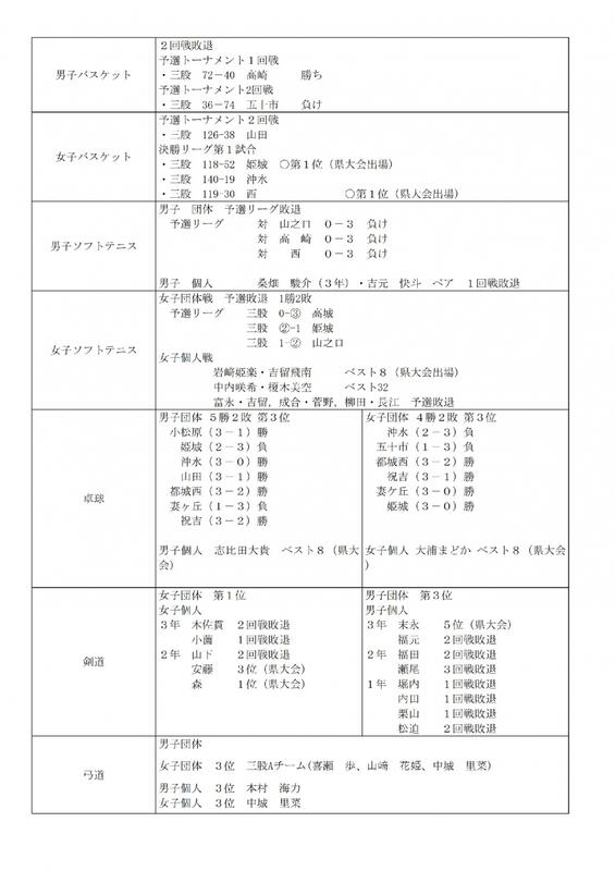 都城地区中学校総合体育大会の関係で弁当持参(給食停止)