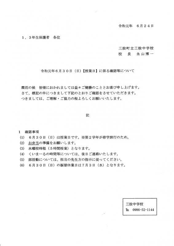 6月30日(日)は授業日となっております。以下の確認をお願いいたします。