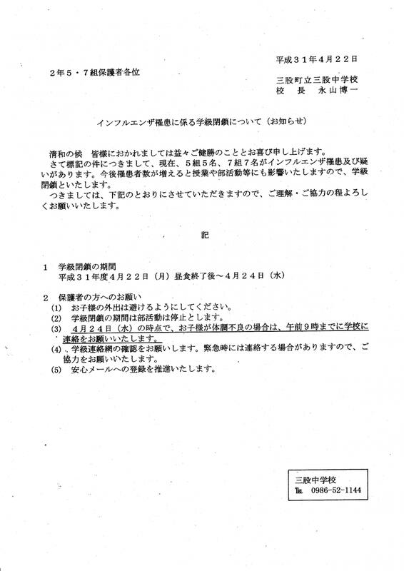 地区中体連も近づいていますので、ご家庭でも予防等にご配慮ください。