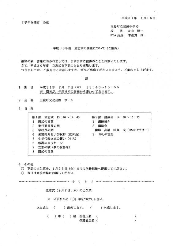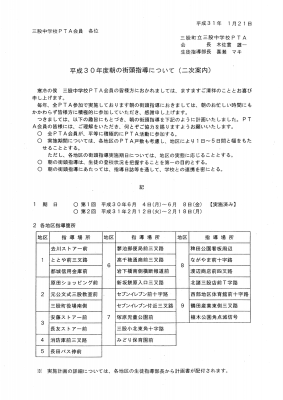 三股中学校 安心メールより