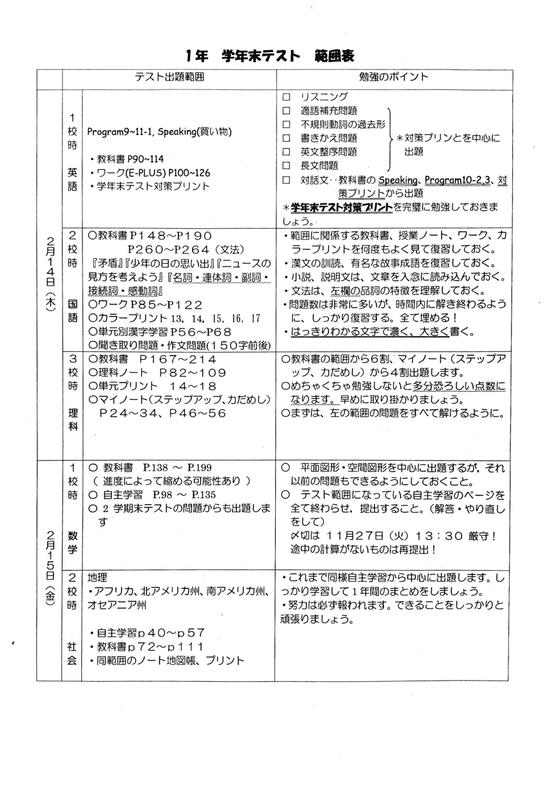 学年末テスト範囲