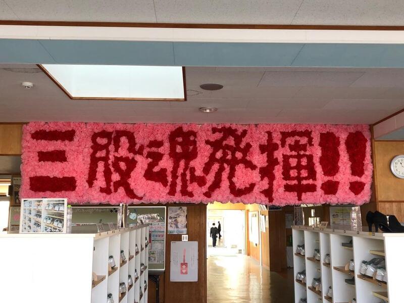 1月末の私立入試の前に、生徒玄関に飾られた応援メッセージです。
