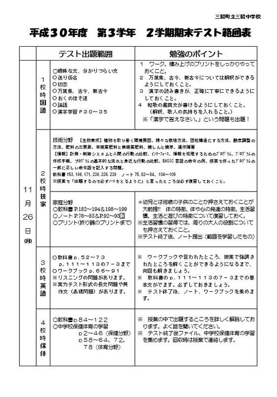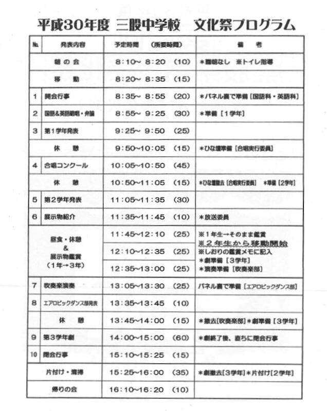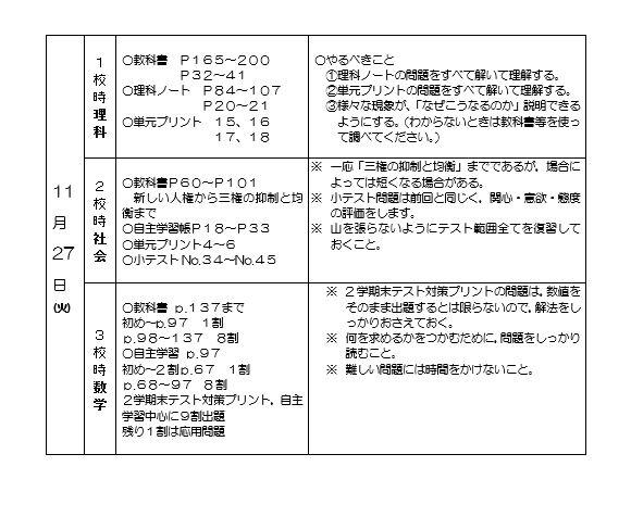 11月5日(月)の時間割は、木曜校時①②④⑥⑤③となります。
