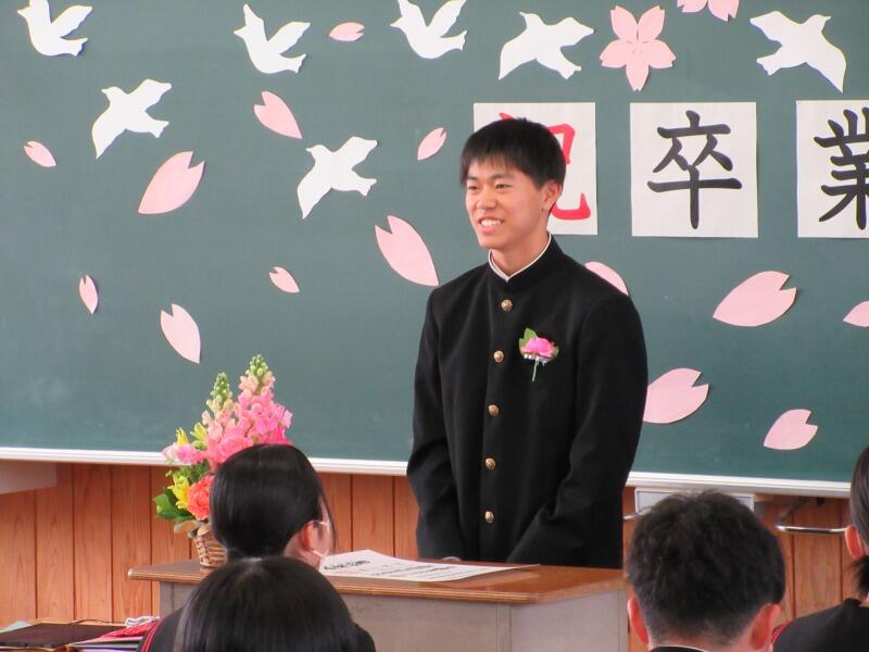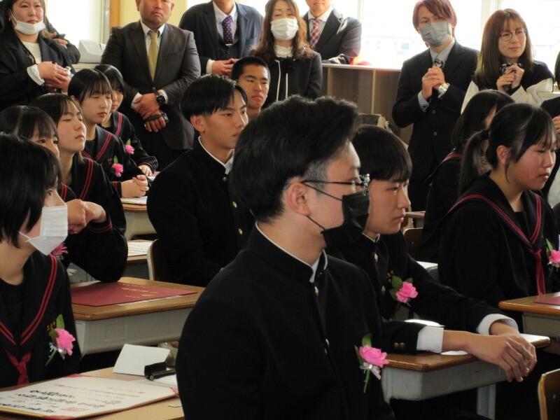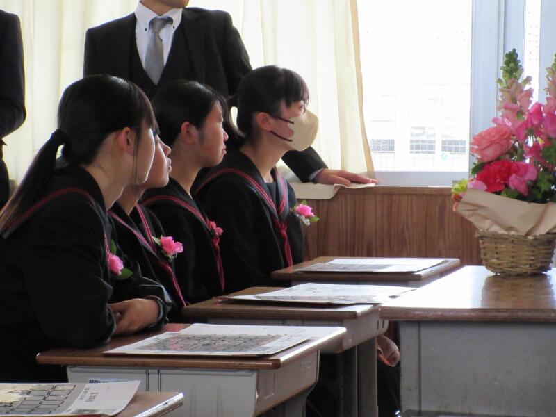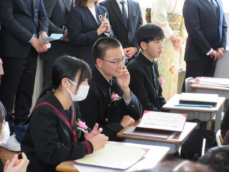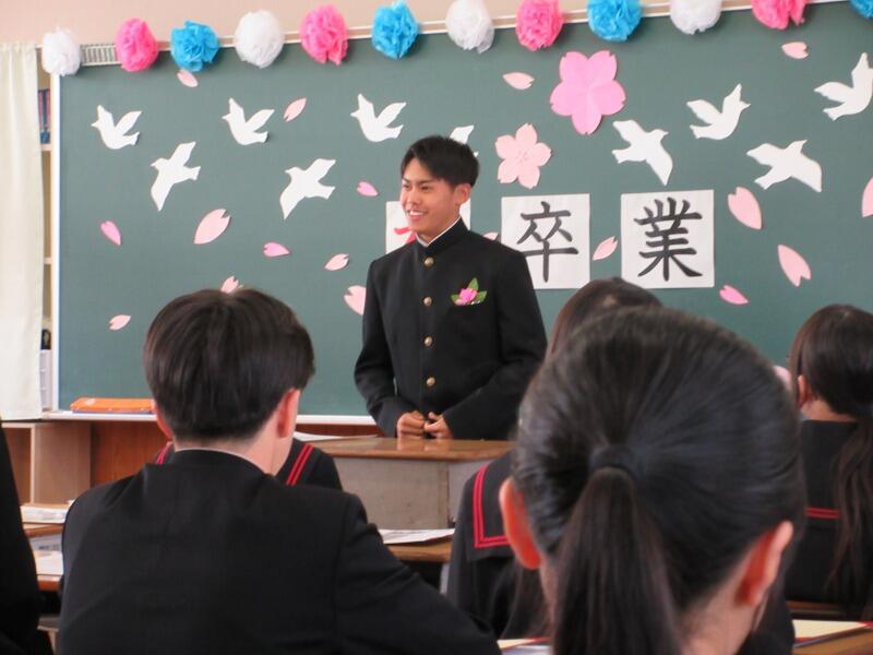 厳かな式典を終えた卒業生たちは、3年間過ごした学び舎で最後となる「学級活動」に臨みました。笑いあり、涙あり。担任の先生や仲間たちと過ごした濃密な時間は、一生の宝物になったはずです。